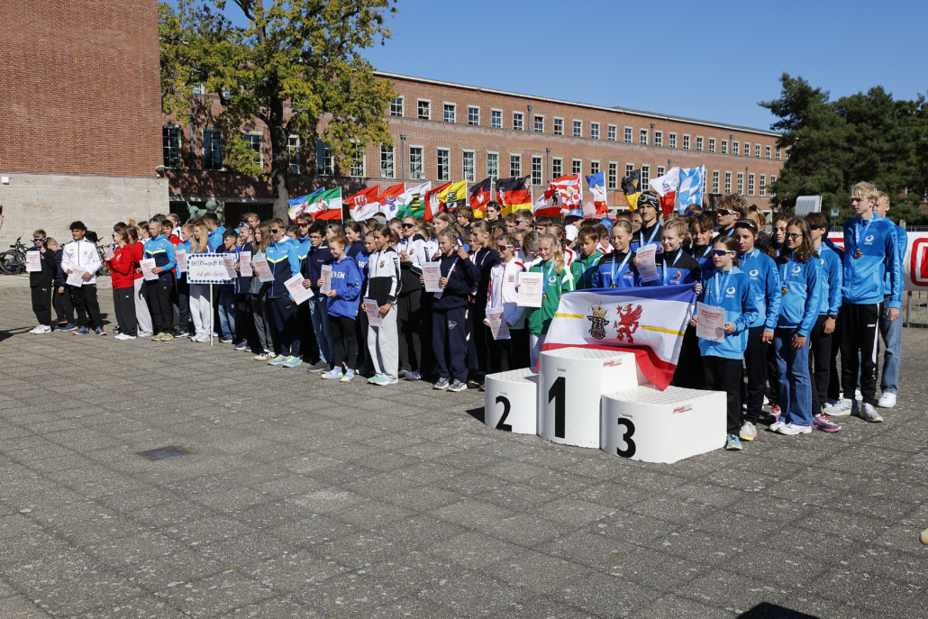 Für das Apian-Gymnasium war die Teilnahme ein echter Meilenstein: Zum ersten Mal durfte die Ingolstädter Mannschaft Bayern beim Bundesfinale vertreten. Die „Apianer“ gaben alles – auch wenn sie in Berlin leider nicht vom Glück verfolgt waren. Schon am ersten Wettkampftag kam es knüppeldick: Einer der stärksten Athleten stürzte unglücklich auf dem Rad und fiel dadurch für beide Wettbewerbe – Einzel wie Staffel – aus. Dazu kam eine 10-Sekunden-Penalty wegen vermeintlich verspäteten Absteigens beim Radwechsel. Dennoch hielt sich das Team nach den Einzelläufen mit Platz 8 in der Gesamtwertung in einer guten Ausgangsposition für die Staffel-Entscheidung am zweiten Tag.