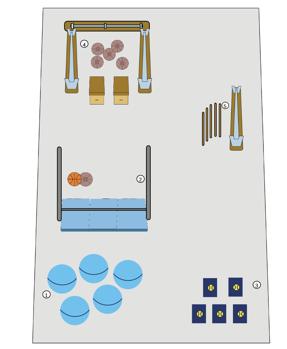Die Halle ist in mehrere Balancstationen eingeteilt, die alle unterschiedliche Anforderungen an Gleichgewicht und Koordination stellen. Die Kinder bewegen sich in Kleingruppen durch diese Stationen. Jede Station wird für eine fest vorgegebene Zeit belegt, dann wird gewechselt.