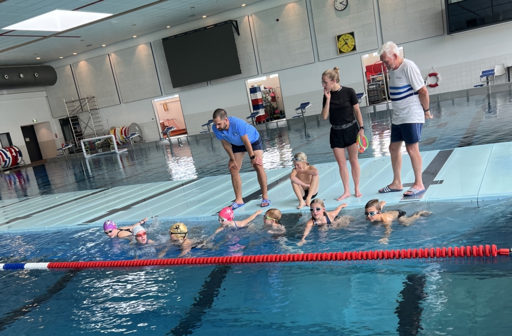 Gestärkt ging es dann am Nachmittag ins Langwasserbad. Dort warteten erneut fünf Stationen. Diesmal wurde es jedoch nass: Technikübungen, Tauchen, Koordination, Wasserball und Bojenschwimmen standen auf dem Programm. Mit viel Spaß probierten die Kinder alles aus und konnten ihre Fähigkeiten im Element Wasser erweitern.